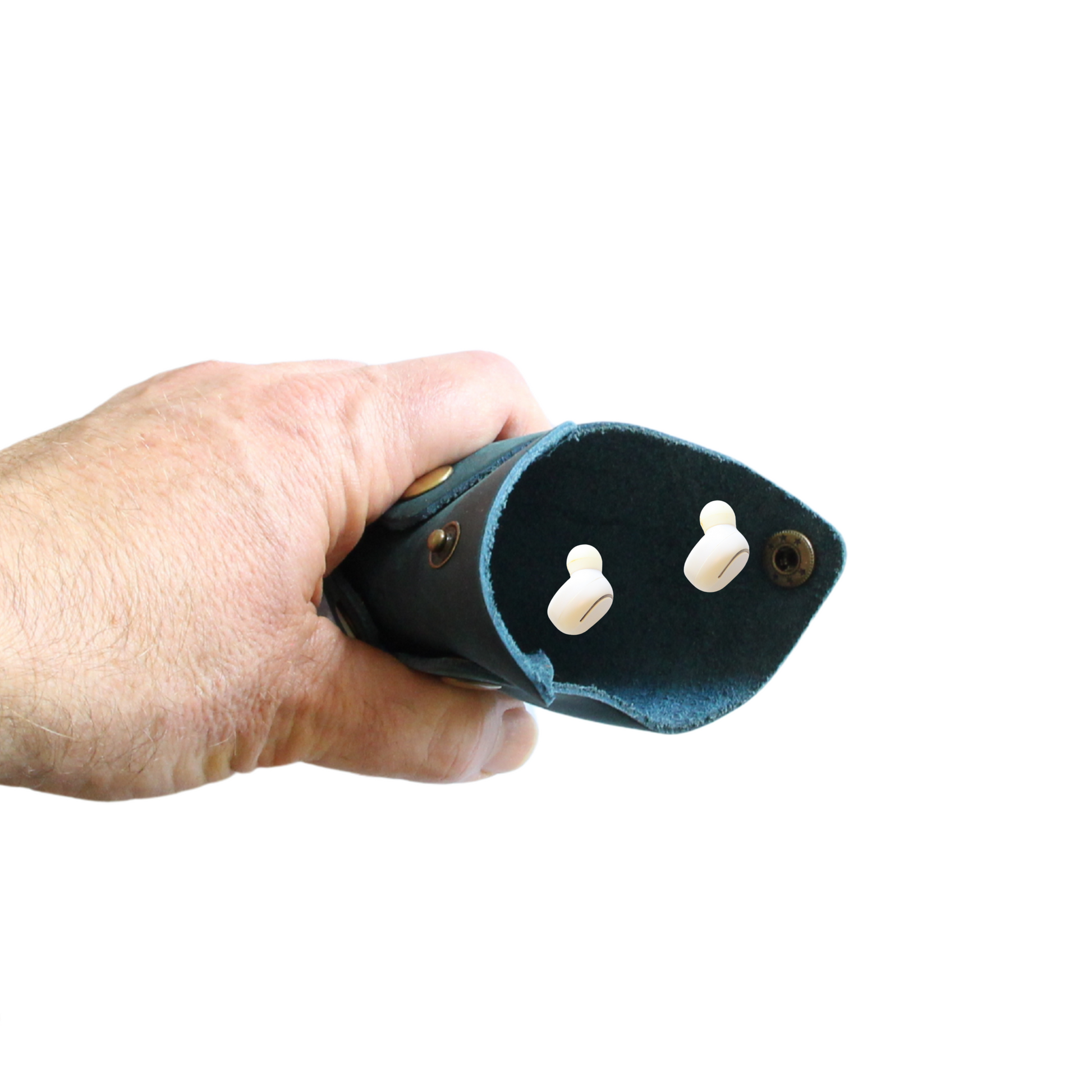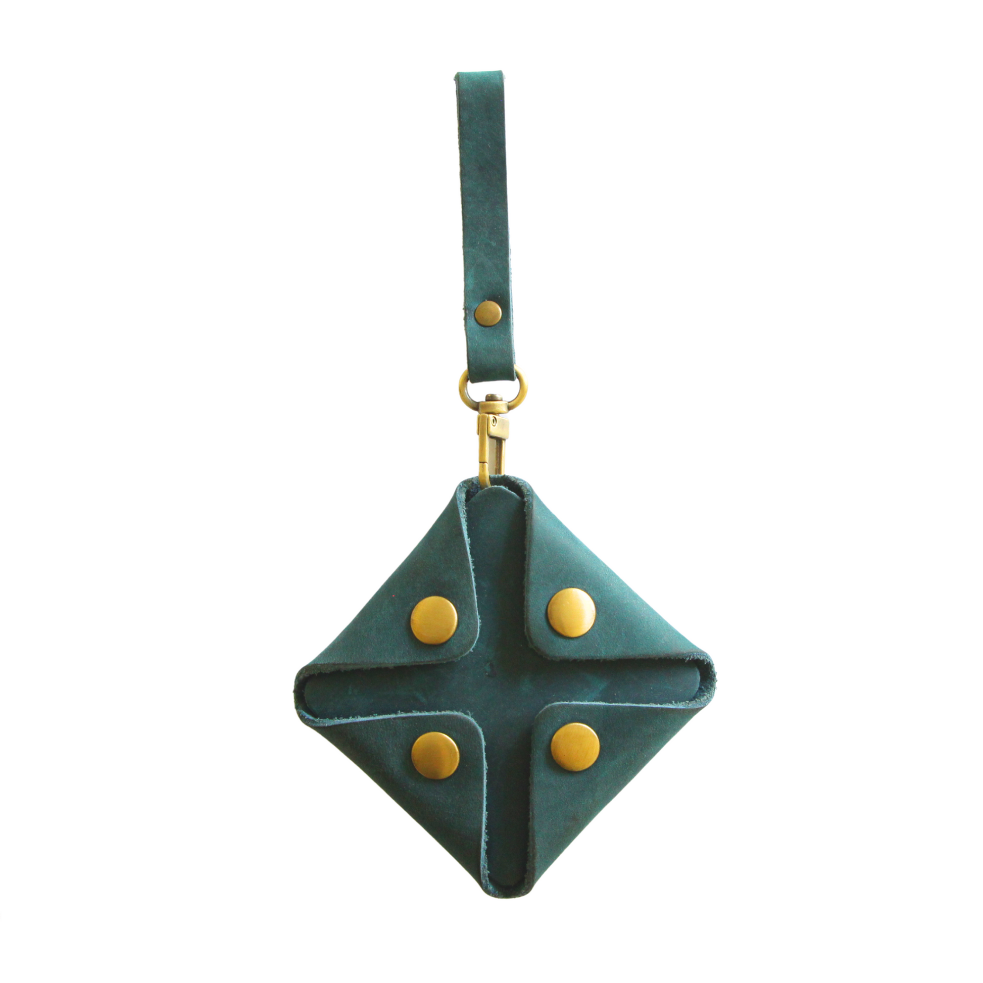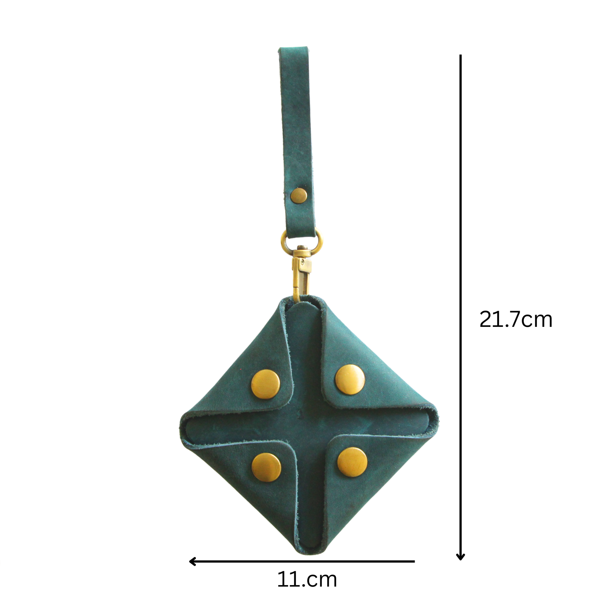 It features four press studs, allowing it to open from any side for quick access. The leather strap comes attached with a small metal clasp, but can easily be removed if preferred.